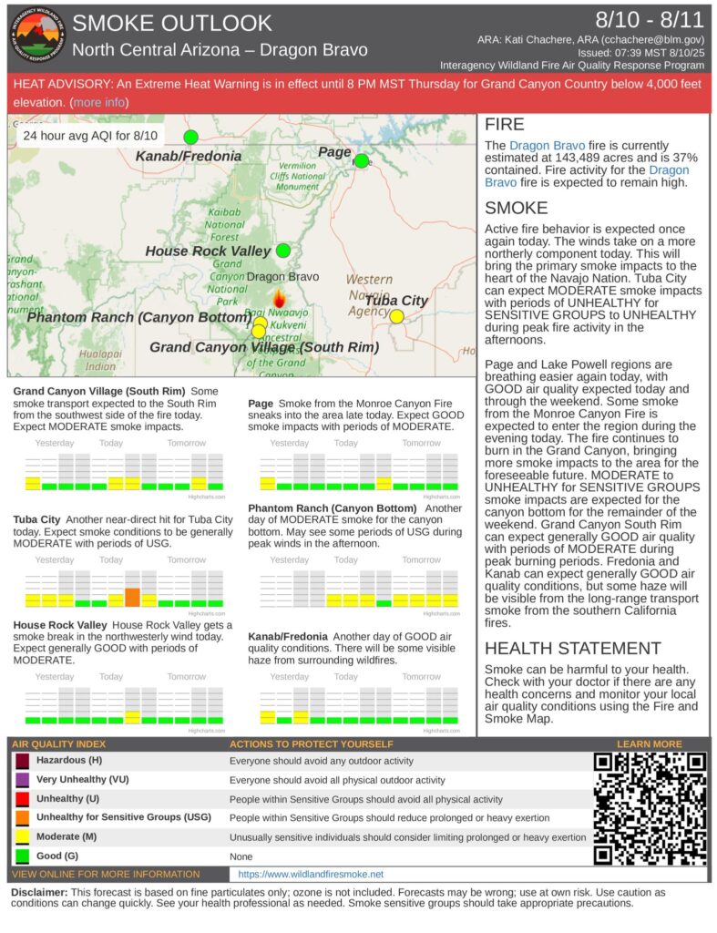 For the most up-to-date information regarding the Dragon Bravo Wildfire and affected recreation in Grand Canyon National Park, call 928-465-7561 or email 2025.dragonbravo.firenet.gov.